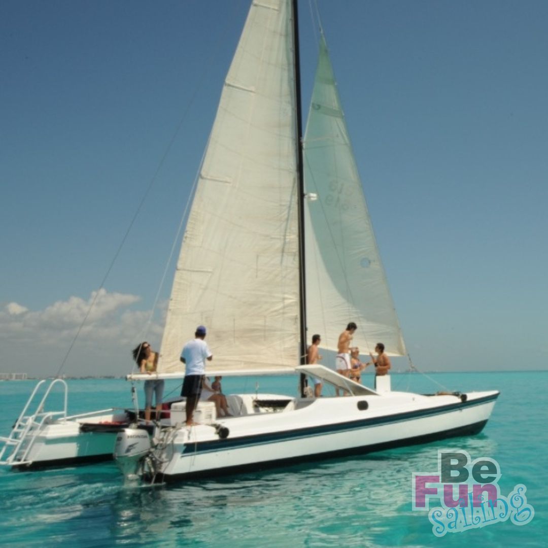 Embark on an unforgettable journey from the moment we pick you up at your hotel. We sail from Cancun on our private basic catamaran to Isla Mujeres. During the trip, enjoy thrilling activities like spinnaker sailing (weather permitting) and snorkeling in crystal-clear waters.