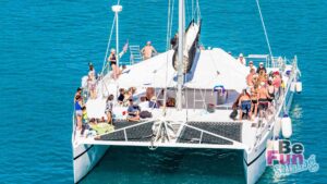 10:00 AM – Departure: The adventure begins! Our catamaran sets sail from Cancun, taking you to the turquoise waters of the Caribbean.